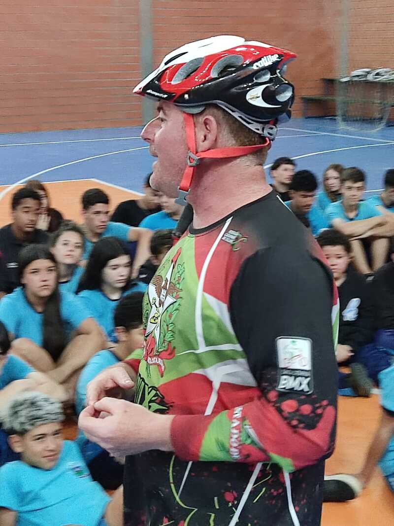Marco Aurélio “Tocha”, piloto de BMX e palestrante motivacional. esteve na Escola Municipal Pietro Maccari, em Morro da Fumaça. Próximos desafios acontecem esta semana.