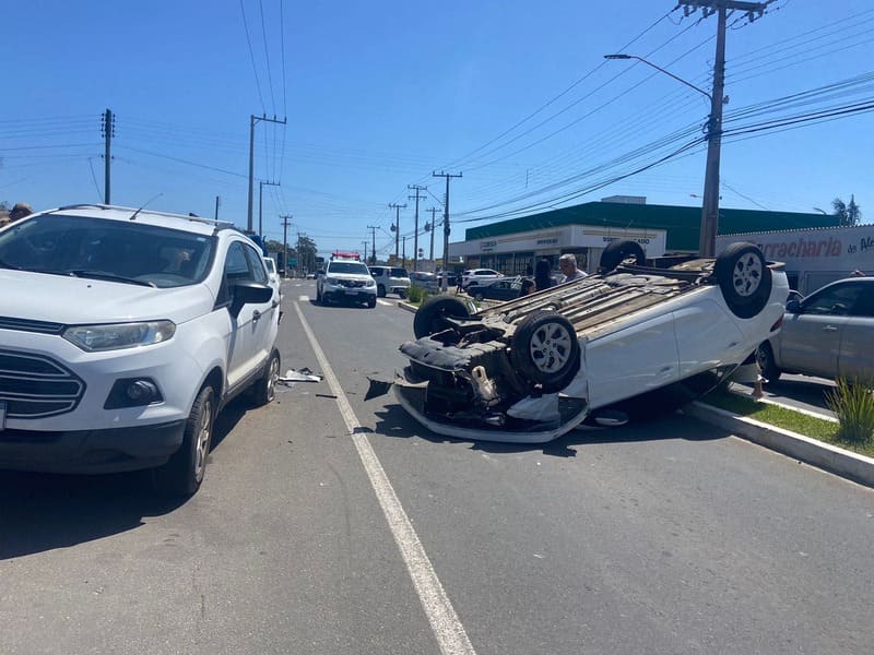 PolicialMotorista perde o controle e HB20 capota em Gaivota