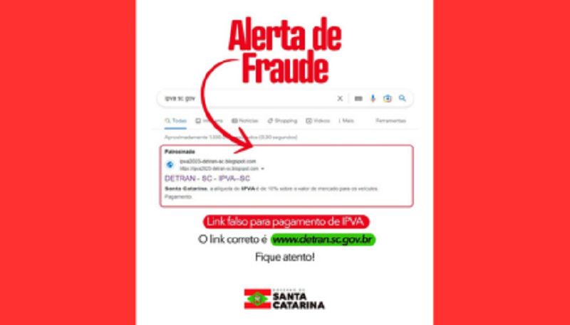 Dando conta de um suposto site falso, criado para aplicação de golpes em contribuintes que fizessem o pagamento do IPVA 2023, a equipe do CyberGAECO (Grupo de Investigação de Crimes Cibernéticos do Ministério Público de Santa Catarina), juntamente ao referido núcleo técnico do Detrnan-SC e do Ciasc (Centro de Informática e Automação do Estado de Santa Catarina), interveio para derrubar o acesso ao falso site utilizado para a prática criminosa.
