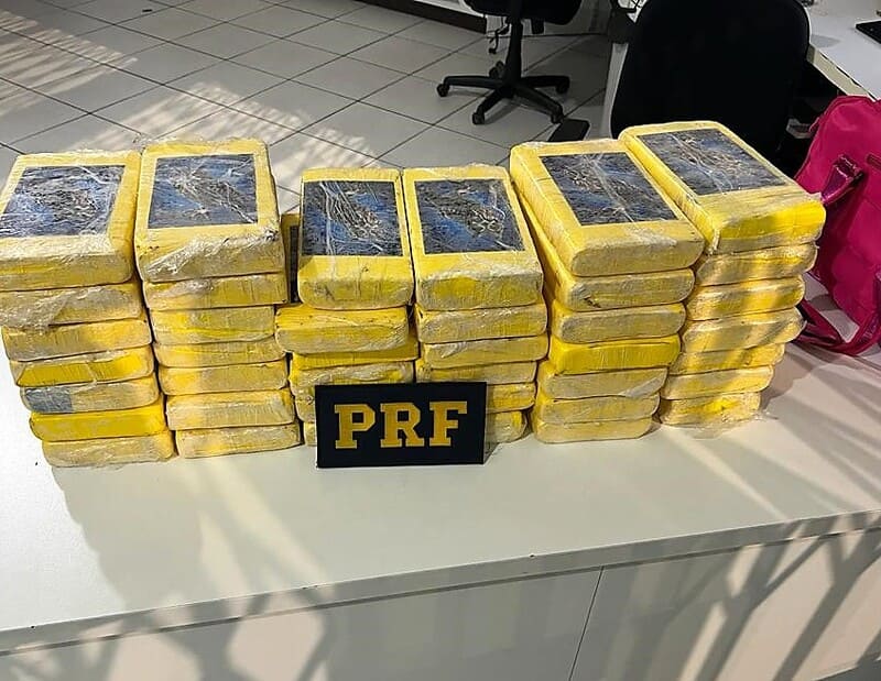 Ao abrirem o porta-malas do carro, os policiais encontraram duas bolsas com 40 tabletes de cocaína.