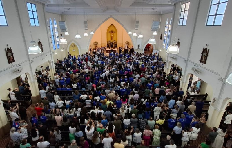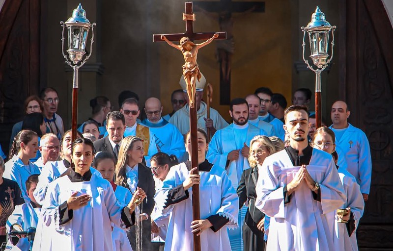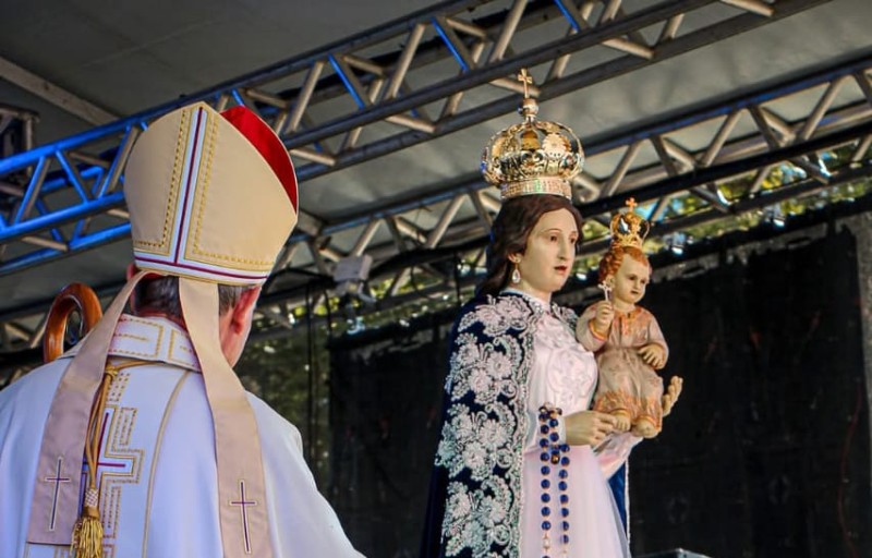 “No dia 03 acontece a coroação de Nossa Senhora. Esse é um dos momentos mais emocionantes. Neste ano, devido a quantidade de fiéis e com condições climáticas favoráveis, o evento foi ao ar livre”, destacou o pároco e reitor do Santuário, Pe. Jonas Emerim Velho.