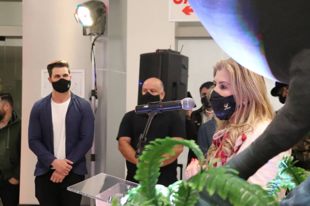 Durante a abertura da exposição, a reitora da Universidade recebeu de Camilo, em nome de todos os lojistas do shopping, flores e uma placa de agradecimento pelos relevantes serviços prestados para a comunidade de Araranguá.