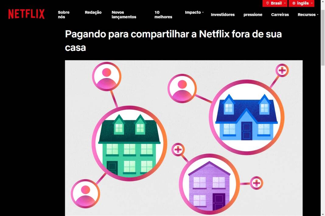 A Netflix anunciou, na última quarta-feira (16), em sua página, que passará a cobrar uma taxa extra para usuários que “emprestam” a conta para amigos assistirem ao streaming. O valor adicional será cobrado de membros dos planos Standard e Premium que compartilham o perfil com pessoas que não moram no mesmo endereço do titular. A cobrança será iniciada em fase de testes nas próximas semanas e, neste primeiro momento, será aplicada no Chile, na Costa Rica e no Peru.