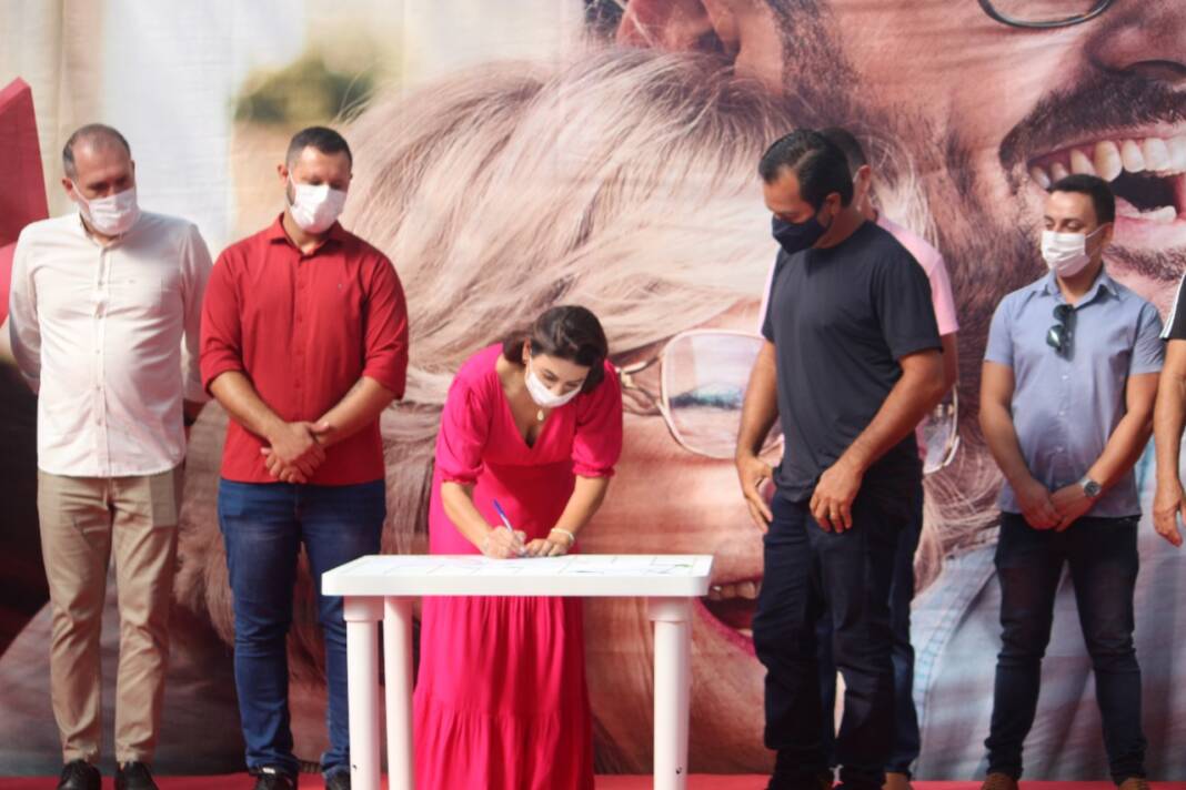 No próprio lançamento, a prefeita assinou e entregou oito ordens de serviço, algumas também em pacote, como a de quatro pavimentações do bairro São Francisco.
