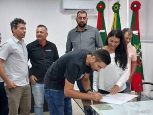 Na manhã desta quinta-feira, 25, gestores municipais, servidores, vereadores, veículos de imprensa e moradores da comunidade de Nova Guarita se reuniram na sede da Prefeitura Municipal de Sombrio para a assinatura de mais uma Ordem de Serviço.