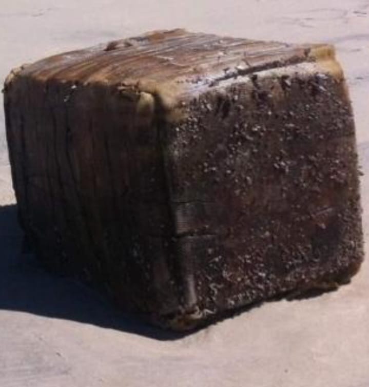 Bloco de látex encontrado no litoral pernambucano, no ano de 2020
