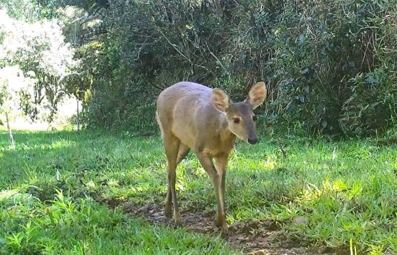 Outra observação importante surgiu a partir do monitoramento ambiental realizado com armadilhas fotográficas instaladas ao longo do trecho. Os registros indicaram que cervídeos nativos evitam utilizar passagens sob pontes quando há presença de lâmina d’água. Diante disso, foram solicitadas adaptações em duas estruturas para garantir a existência de passagens secas, permitindo que os animais atravessem o local mesmo em períodos de cheia.