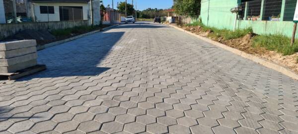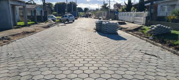 As ruas Eralides Silva Pereira, Artur Ferreira e Manoel Augusto da Rosa já estão prontas. Em andamento está a pavimentação da rua Alcides José Amorim, que é ligação com estas três e também com a Lino Domingos Coelho, prestes a começar a colocação de lajotas.