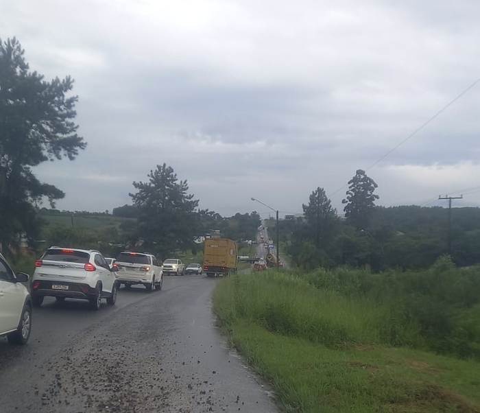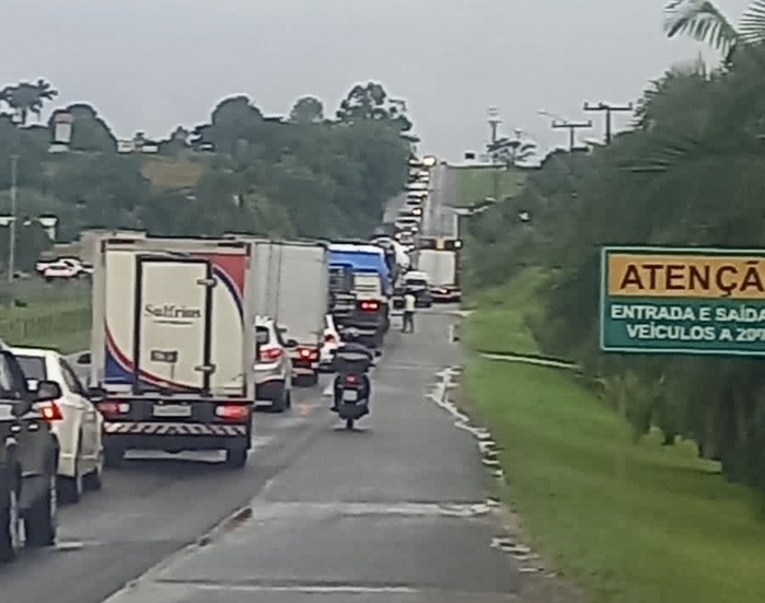 O trânsito ainda é lento na Rodovia.