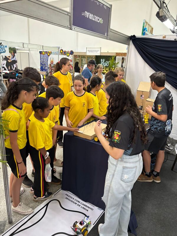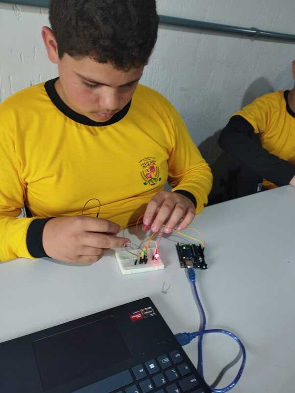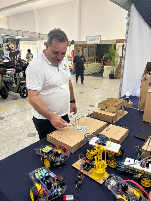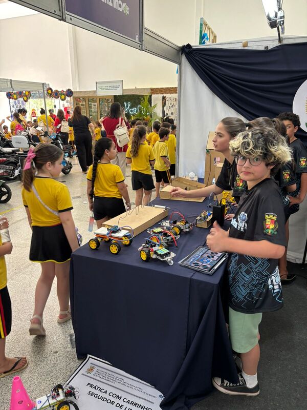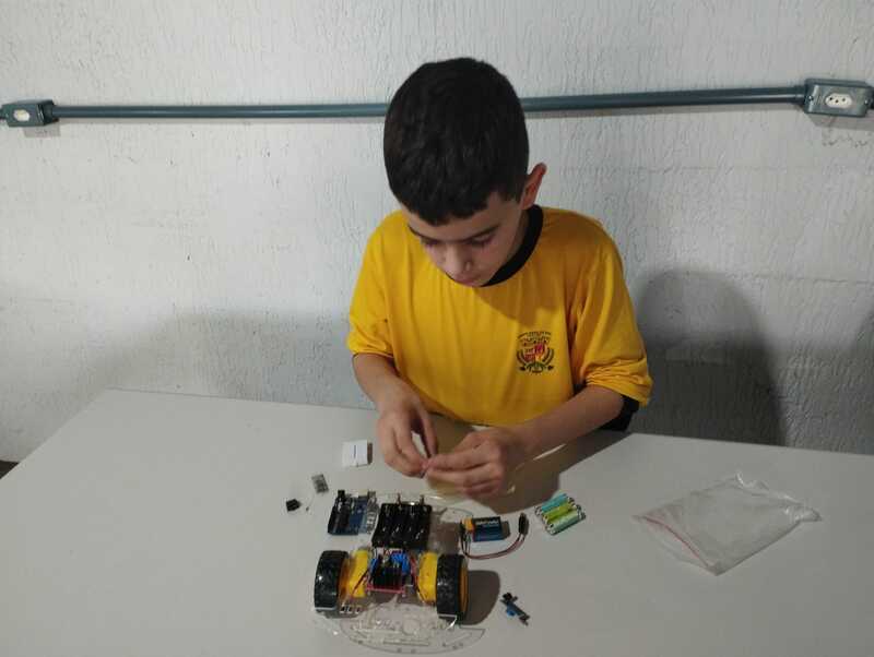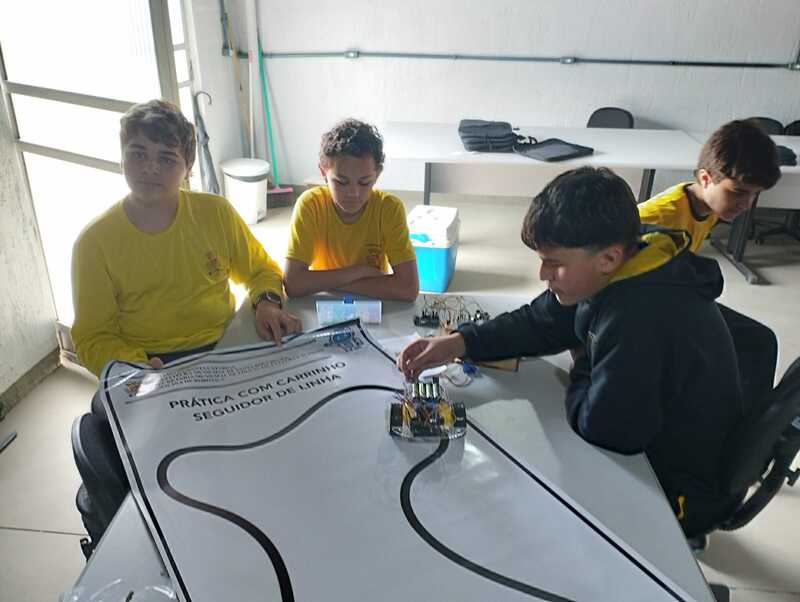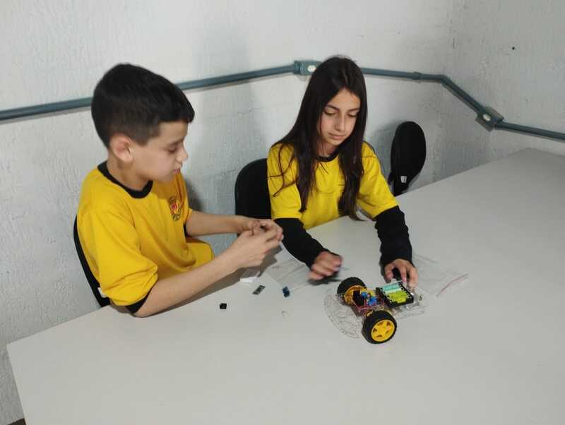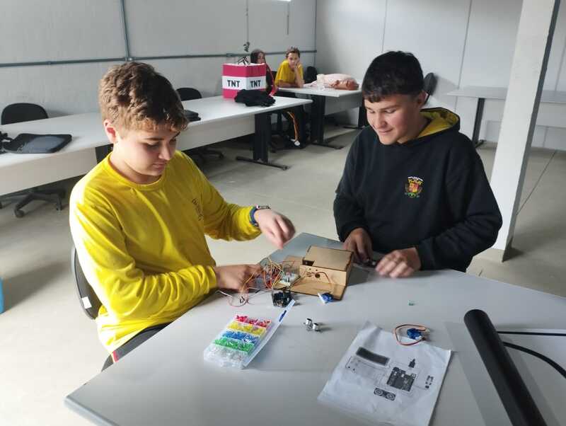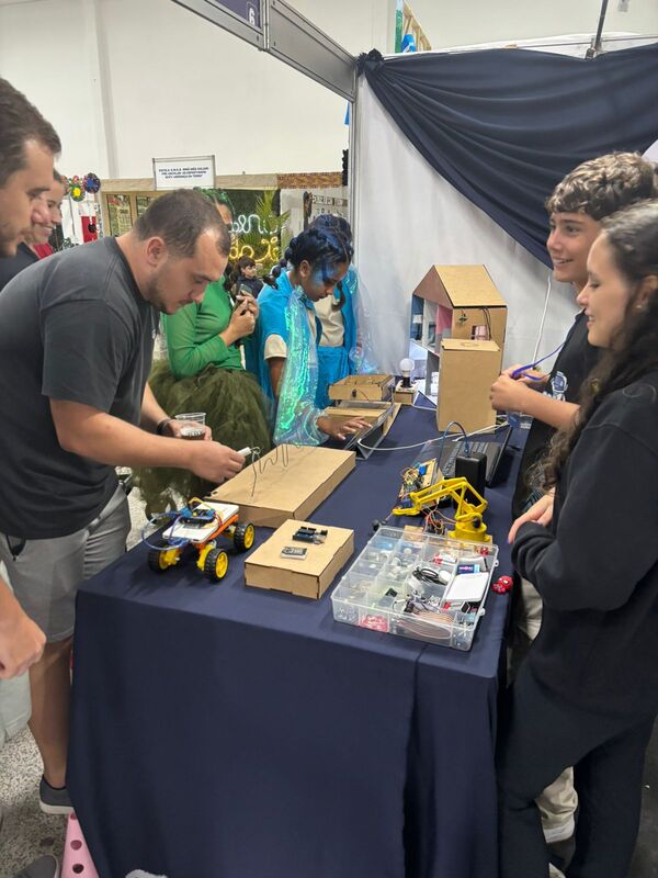 Durante as atividades, os alunos trabalham com sensores, motores, placas controladoras, kits de Arduino e diversos componentes eletrônicos que permitem transformar ideias em soluções concretas. Entre os projetos desenvolvidos estão sistemas de irrigação automática, casinha inteligente, lixeira automática, braços robóticos e carrinhos programados para executar tarefas específicas. Cada desafio propõe colaboração, raciocínio lógico e investigação científica.