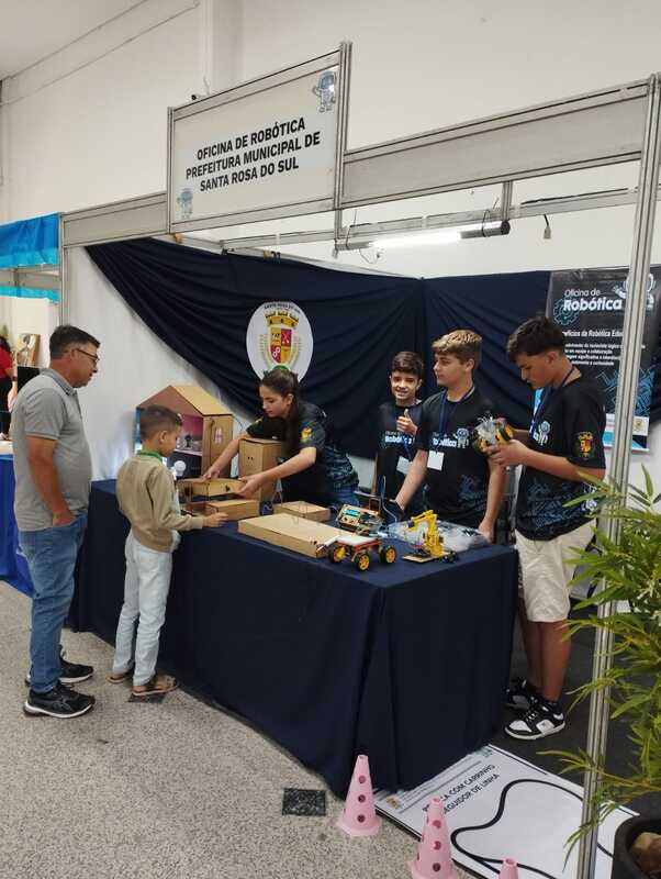 A oficina de Robótica da rede municipal de Santa Rosa do Sul vem se consolidando como uma das iniciativas mais inovadoras, proporcionando aos estudantes experiências práticas que unem tecnologia, criatividade e resolução de problemas. Voltado à Educação Básica com alunos de sexto ao nono ano, a mediação conta com um professor e com a coordenadora do projeto. As aulas acontecem duas vezes por semana, no contraturno escolar.