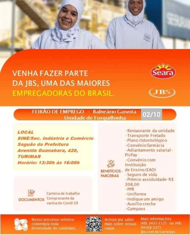 GeralOportunidade: Balneário Gaivota realiza novo Feirão de Empregos