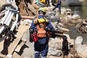Um bombeiro de Araranguá e seu cão, participaram da equipe catarinense que foi a Petropólis/RJ auxiliar o resgate de vítimas de uma tragédia. Uma forte enxurrada atingiu a cidade, deixando centenas de mortos e desaparecidos.
