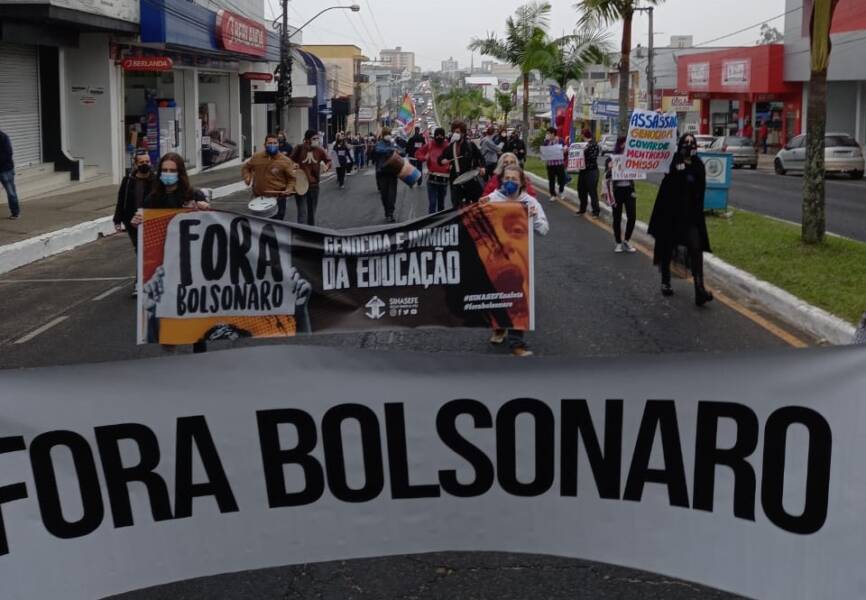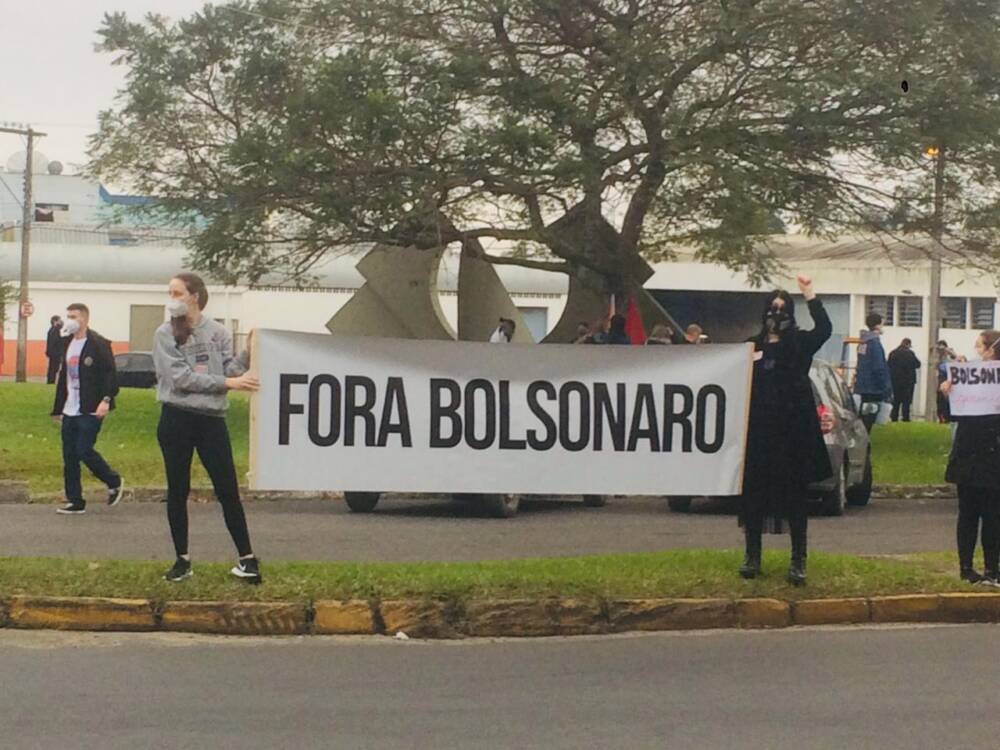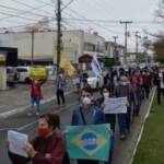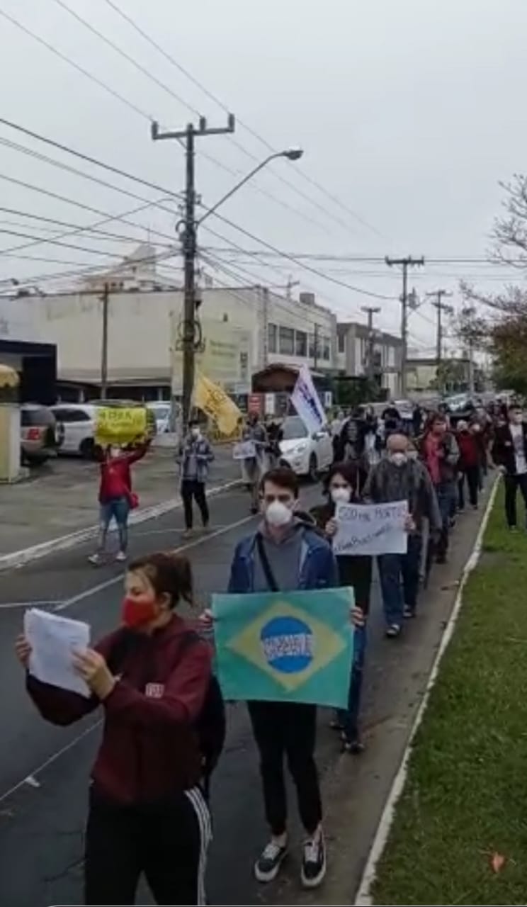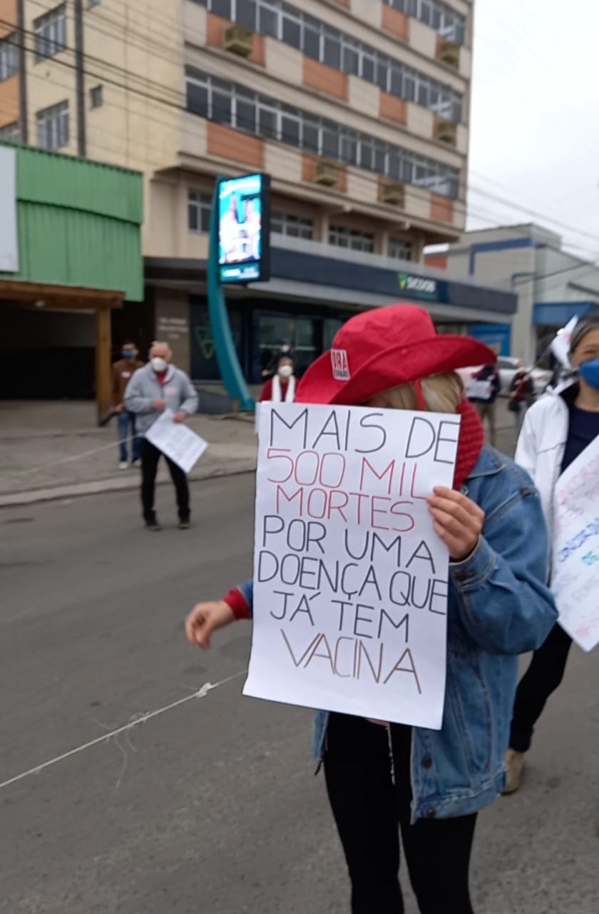 No dia em que o Brasil atingiu a triste marca de 500 mil mortos pela covid-19, utilizando de distanciamento social, usando máscaras e organizados, um grupo de manifestantes tomou as ruas de Araranguá.