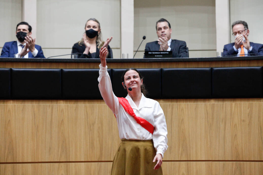 “Anita Garibaldi saiu de Santa Catarina com apenas 18 anos e morreu com 27 anos de idade. Em apenas um ano e oito meses na Itália se tornou a mãe da pátria italiana e a heroína de dois mundos”, resumiu o escritor Adílcio Cadorin, autor da biografia “A Guerreira das Repúblicas”, que fala sobre a figura de Anita. “Nenhuma outra pegou em armas para lutar por quatro repúblicas, em dois continentes diferentes, pela república catarinense, república riograndense, república uruguaia e república romana”, exemplificou Cadorin. Antes da solenidade, o grupo Guardiãs de Anita e soldados farroupilhas e imperiais, criado aos moldes da legião garibaldina, fez uma apresentação no hall do Parlamento.