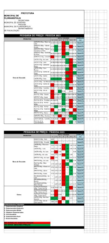 A Prefeitura de Florianópolis, por meio do Procon, realizou nesta sexta-feira (17) a pesquisa de preços de itens de Páscoa, como ovos e caixas de chocolate. Ao todo, foram 46 itens das principais marcas, analisados em sete supermercados da Capital. O levantamento revelou a diferença de até R$21,00 em um dos itens nos estabelecimentos.