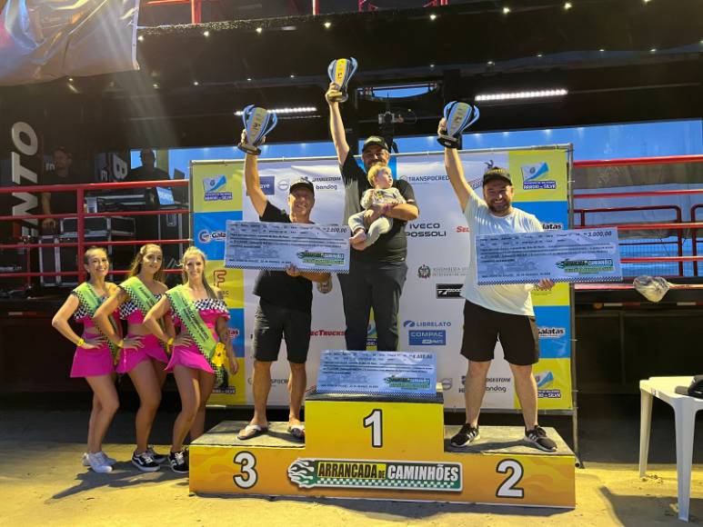 Pilotos comemoram a vitória na Arrancada de Caminhões
