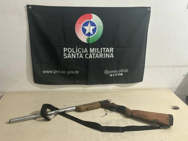 Após efetuada a revista, o homem foi identificado e ele portava uma arma calibre 12 artesanal.