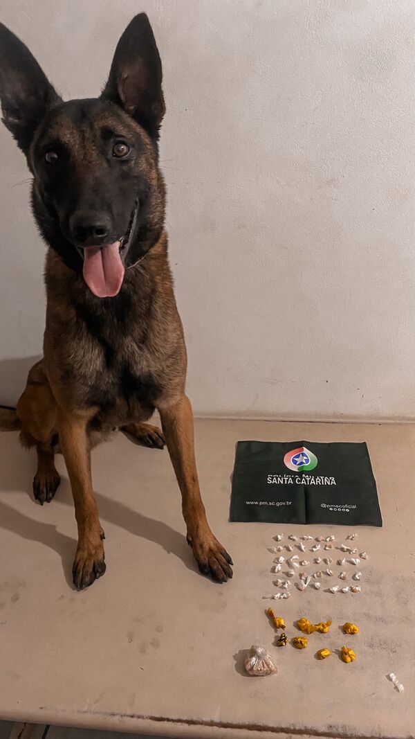 Após denúncias de que haveria entorpecente escondido em um terreno baldio, próximo à rua central da favela do Ucca, em Araranguá, a guarnição do Canil da Polícia Militar se deslocou até o local.