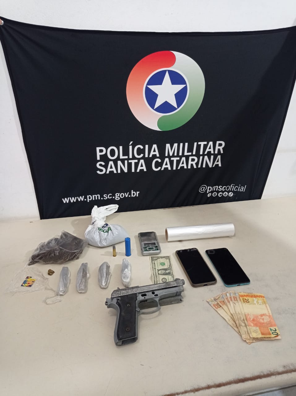 PM apreende maconha, LSD, balança digital, munições e arma de fogo em Arroio do Silva