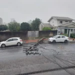 A queda do primeiro poste foi ainda dentro do estacionamento do SESI, onde o caminhão estava, mas os demais caíram em via pública, onde havia carros estacionados. Com a queda dos outros postes, um Siena e um Prisma foram atingidos e danificados.