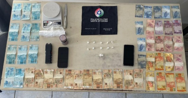 Na busca domiciliar, os policiais localizaram 10,42 gramas de crack já embaladas para a venda, além de uma balança de precisão, R$ 1.931,00 em dinheiro, uma faca, embalagens plásticas e uma máquina de choque.