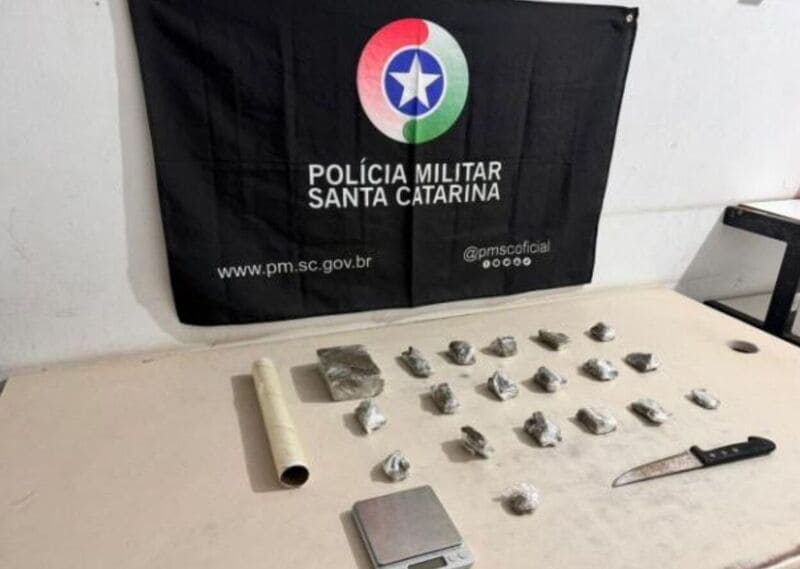 No início da noite de domingo, dia 9, após o recebimento de denúncias que relatavam o comércio de entorpecentes em uma residência, localizada no bairro Lagoão, em Araranguá, a Policia Militar intensificou as patrulhas na localidade.