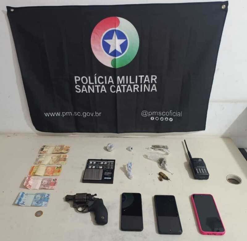 Ainda foi apreendido, um rádio comunicador e dinheiro que estava em posse do homem conduzido pela PM.