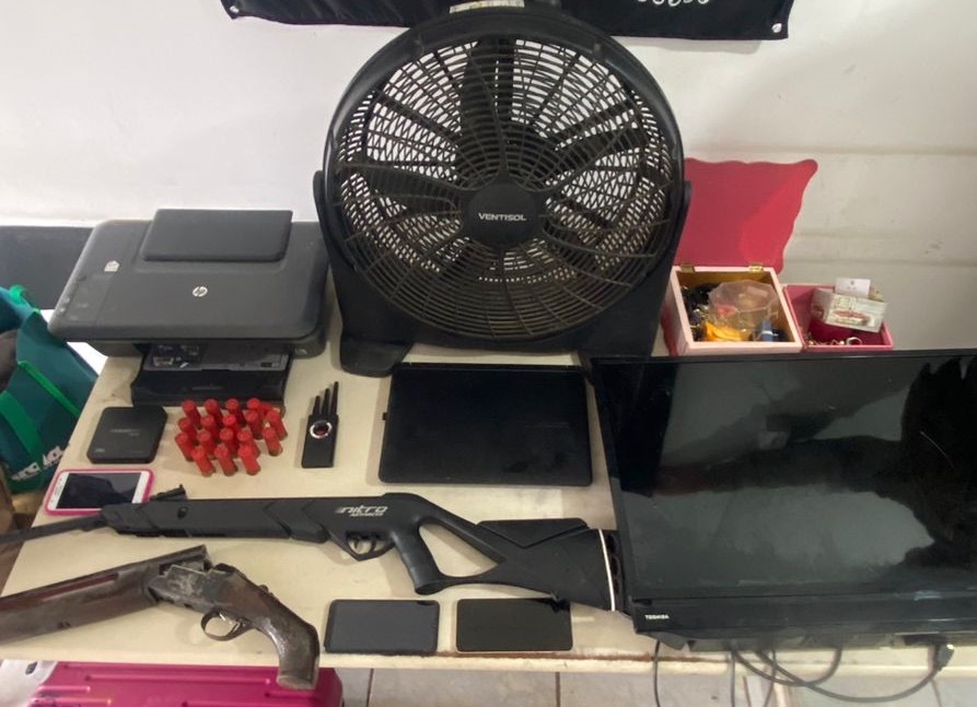 Os suspeitos, os bens recuperados, a arma e as munições foram encaminhados para a central de Polícia Civil para os procedimentos cabíveis.
