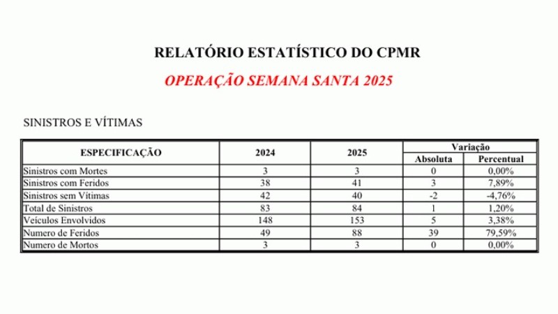 A PMSC, Polícia Militar de Santa Catarina, por intermédio do CPMRv, Comando de Polícia Militar Rodoviária, divulgou os números finais da Operação Semana Santa/Tiradentes 2025, que iniciou às 19 horas da última quarta-feira, dia 16, e encerrou na manhã de terça-feira, dia 22.