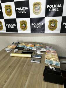 Foram cumpridos nove mandados de busca e apreensão nos bairros Paraíso e Tereza Cristina, sendo apreendidos aproximadamente R$ 10.500,00, celulares, plástico para embalar drogas, balança de precisão, além de de crack, cocaína e maconha.