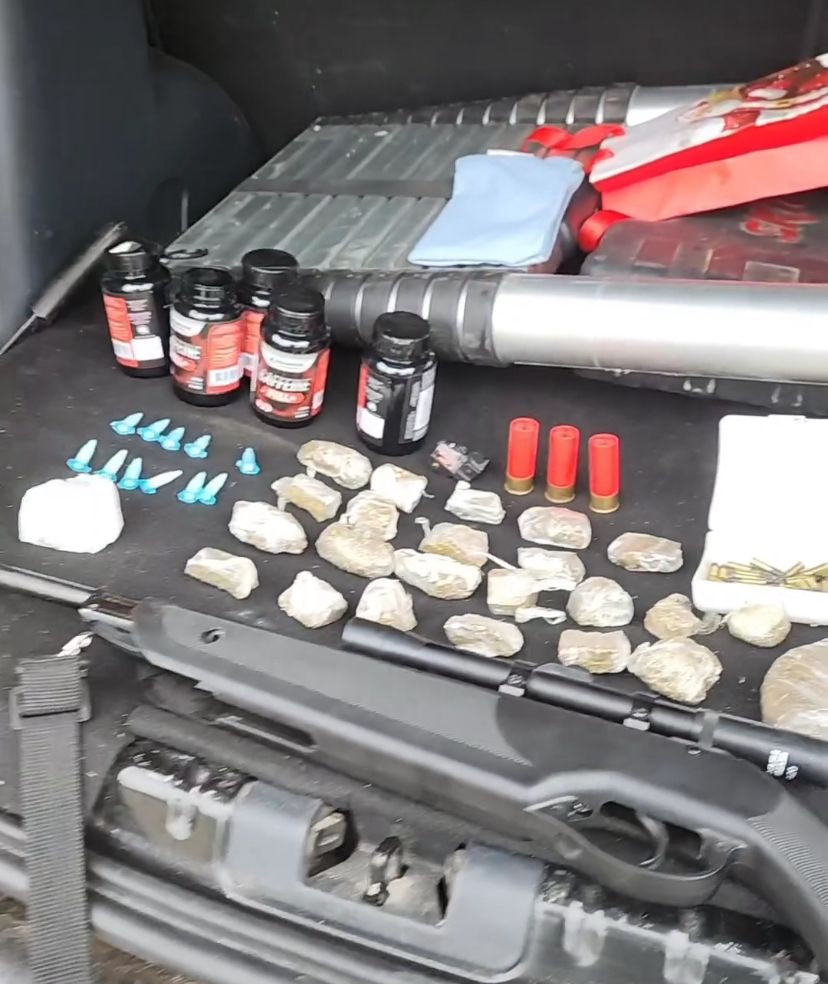 Na ação, foram apreendidas 2 armas de fogo (7,65 mm e cal 22), munição, drogas (cerca de 320g de maconha, 52g de cocaína e 6 comprimidos de ecstasy) e outros (balança de precisão, celulares etc).