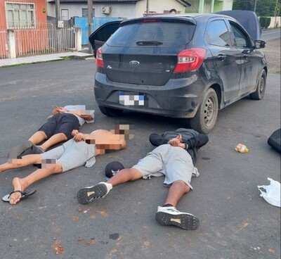O veículo foi apreendido por infração penal, pois estava sendo utilizado para práticas de crimes. Os três envolvidos na ocorrência foram conduzidos à Delegacia de Polícia Civil.