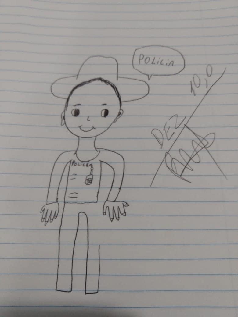 Os policiais, diante do mal estado da menor, compraram comida e disponibilizaram-se a entretê-la até os procedimentos administrativos acabarem. Assim, de forma carinhosa, a criança os retribui com um desenho por todo o serviço prestado.