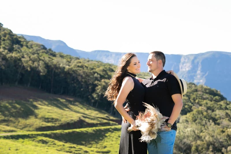 No ensaio pré-wedding de Bárbara e Saimon Iniciamos nossa jornada na deslumbrante Encosta dos Canyons, no Rio Grande do Sul, onde o cenário majestoso das montanhas proporcionou um plano de fundo espetacular. Nos transportamos para a serenidade da plantação de soja de Meleiro, onde o amor entre o casal se manifestou de forma genuína e profunda. Entre os campos dourados, símbolos de crescimento e prosperidade, Bárbara e Saimon encontraram um significado especial de um futuro promissor cheio de amor, alegria e cumplicidade!