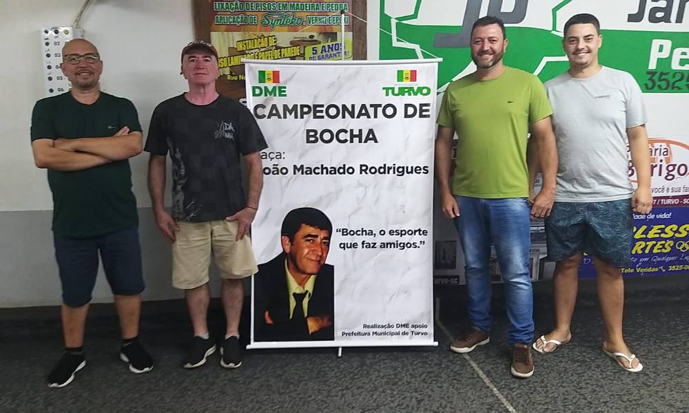 Nesta quarta-feira (27), a Prefeitura de Turvo, por meio do Departamento de Esportes, deu início ao campeonato de bocha que promete agitar as segundas, quartas e sextas-feiras do município. Com a participação de 12 duplas, a competição leva o nome de Taça João Machado Rodrigues, o Dão, e teve seus primeiros jogos.
