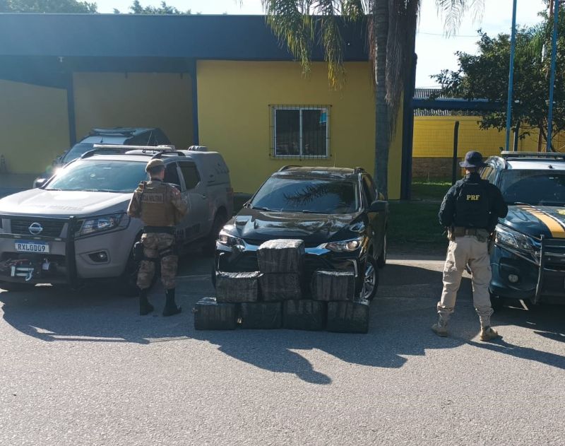 PRF e PM apreendem 182 quilos de maconha em carro com placas de Araranguá