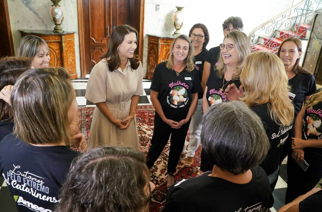 Primeiras e segundas-damas da AMESC (Associação dos Municípios do Extremo Sul Catarinense) estiveram no encontro com a primeira-dama de Santa Catarina, Késia Rodrigues Martins da Silva, no Palácio da Agronômica na quinta-feira (17).
