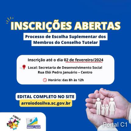 O Conselho Municipal dos Direitos da Criança e do Adolescente de Balneário Arroio do Silva informa que foram prorrogadas as inscrições para o processo de escolha suplementar dos membros suplentes do Conselho Tutelar.
