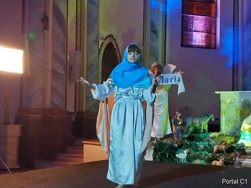 No domingo, após a missa das 19 horas, a Associação Coral de Sombrio fez uma encenação de natal incrível, com muitos atores em cena, vestidos à caráter, interpretando passagens bíblicas.