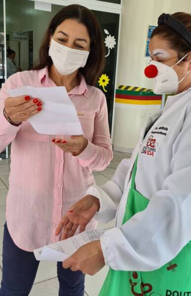 A Prefeita Gislaine Cunha esteve pela manhã acompanhando as doações e conversando com os doadores, a equipe de coleta, servidores do posto de saúde e ainda com os Doutores da Vida, grupo de Doutores Palhaços que participou da ação.