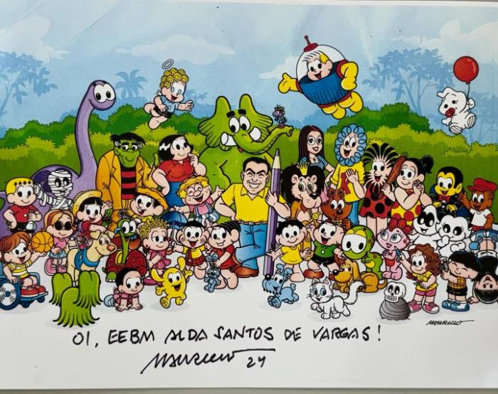 O reconhecimento veio de forma singela, mas significativa: Mauricio de Sousa, o renomado criador da Turma da Mônica, presenteou o projeto com uma foto autografada que incluía todos os personagens. Essa homenagem é um testemunho do impacto positivo que o projeto teve na educação e na imaginação das crianças. Parabéns às professoras e à turma do Infantil V por esse feito notável!