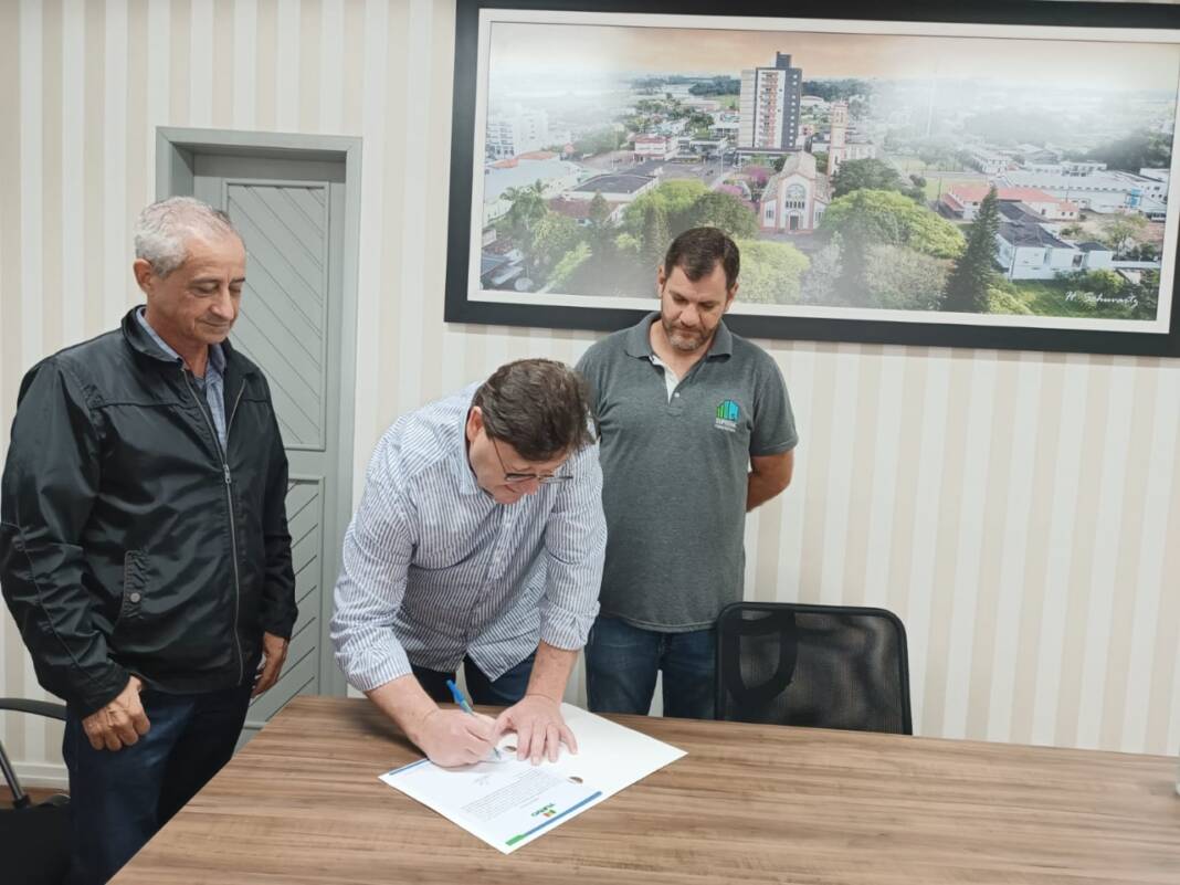 Foi assinada a ordem de serviço para ampliação da escola Professor Celso Marcon, no bairro São Braz, de Turvo. A construção envolve um refeitório e a cobertura no acesso a unidade educacional.