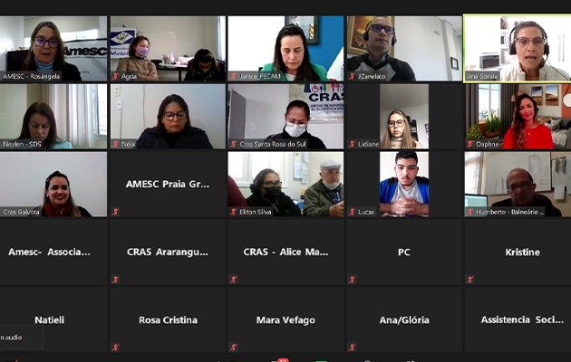 Foi realizada de forma virtual a reunião técnica sobre o Sistema de Garantia de Direitos e a Escuta Especializada realizada pelos serviços da rede de proteção (educação, saúde, assistência social, segurança pública, etc.). O evento foi uma parceria da FECAM (Federação Catarinense dos Municípios), MPSC (Ministério Público de Santa Catarina), SDS (Secretaria de Desenvolvimento Social), CEDCA/SC (Conselho Estadual dos Direitos da Criança e do Adolescente), ACCT (Associação Catarinense de Conselheiros Tutelares) e assessoria de Políticas Públicas da AMESC (Associação dos Municípios do Extremo Sul Catarinense).