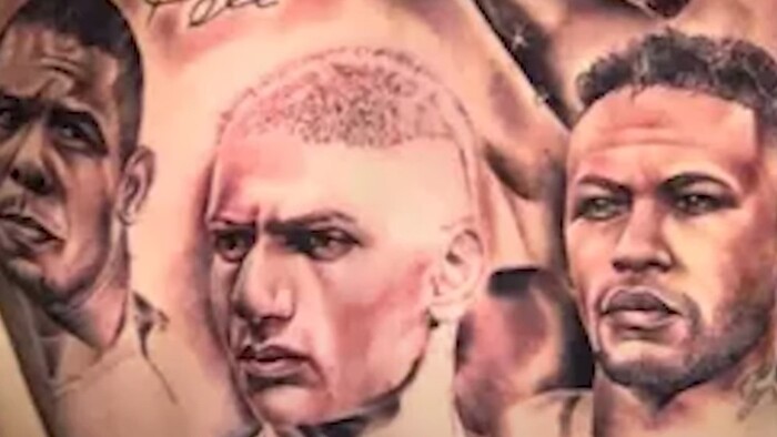 Além dos rostos, o jogador incluiu na tatuagem um recado que recebeu do Rei Pelé a respeito do seu desempenho nos jogos com a camisa do Brasil.