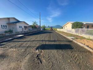 No último mês foram finalizadas as obras de drenagem, meio-fio e base para pavimentação. O próximo passo será a liberação dos equipamentos do CINFRA para pavimentação asfáltica.