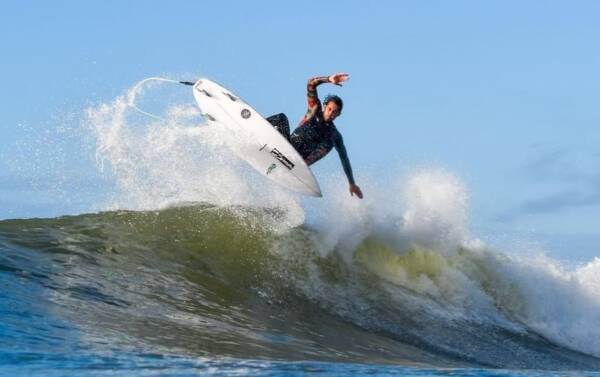 O surfista local da vizinha Balneário Gaivota abriu a bateria final da principal categoria, a Open, repetindo a mesma nota da 1ª fase: 8.17.