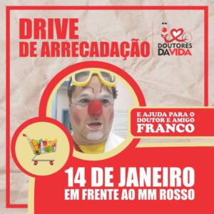 Os Doutores da Vida de Sombrio irão promover neste sábado, dia 14, em frente ao Mercado MM Rosso, um drive de arrecadação solidário em prol do amigo Franco Vasconcelos e Souza.