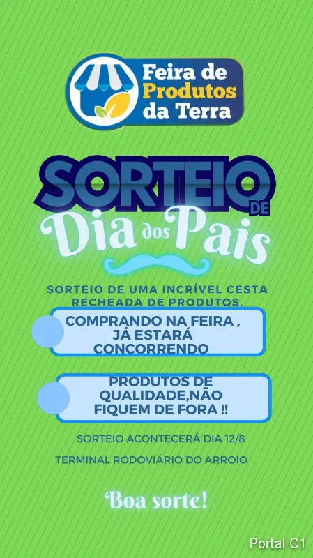 Sábado (12) é dia de Feira de Produtos da Terra no Terminal Rodoviário de Balneário Arroio do Silva. Além dos produtores e artesãos locais estarem tradicionalmente aos sábados pela manhã à espera da população com produtos de qualidade, neste fim de semana será realizada uma ação especial voltada ao Dia dos Pais. Quem comprar na feira terá direito a participar do sorteio de uma cesta.