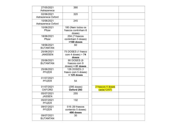 Na última sexta-feira, 30 de julho, os dois locais de vacinação contra a Covid-19 no Município, Unidades de Saúde de Lagoa de Fora e salão Santo Expedito no bairro Jardim Ultramar não deram conta da procura pela primeira dose. Segundo a enfermeira responsável pela vacinação contra a Covid-19, Karina da Silva, foram aplicadas todas as doses disponibilizadas pela Secretaria de Saúde do Estado, num total de 140.